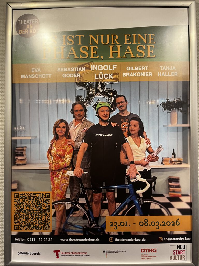 – Abends waren wir spontan im Theater an der Kö. Das Stück hieß: Es ist nur eine Phase, Hase und handelt – wie passend – von Menschen in der Lebensmitte.